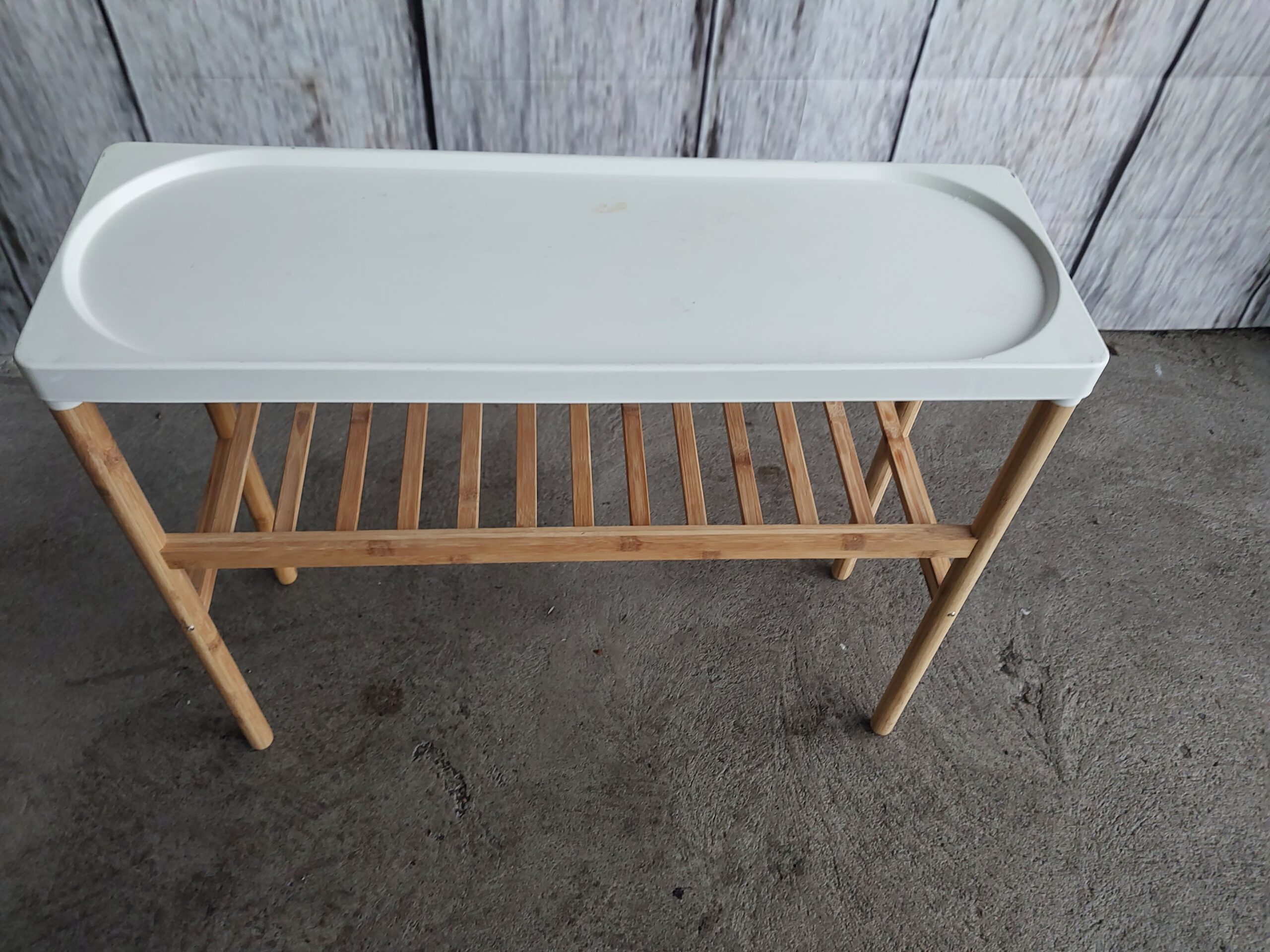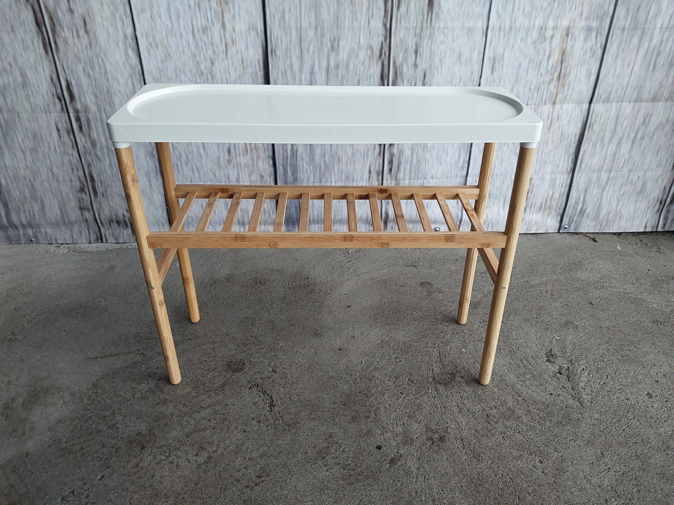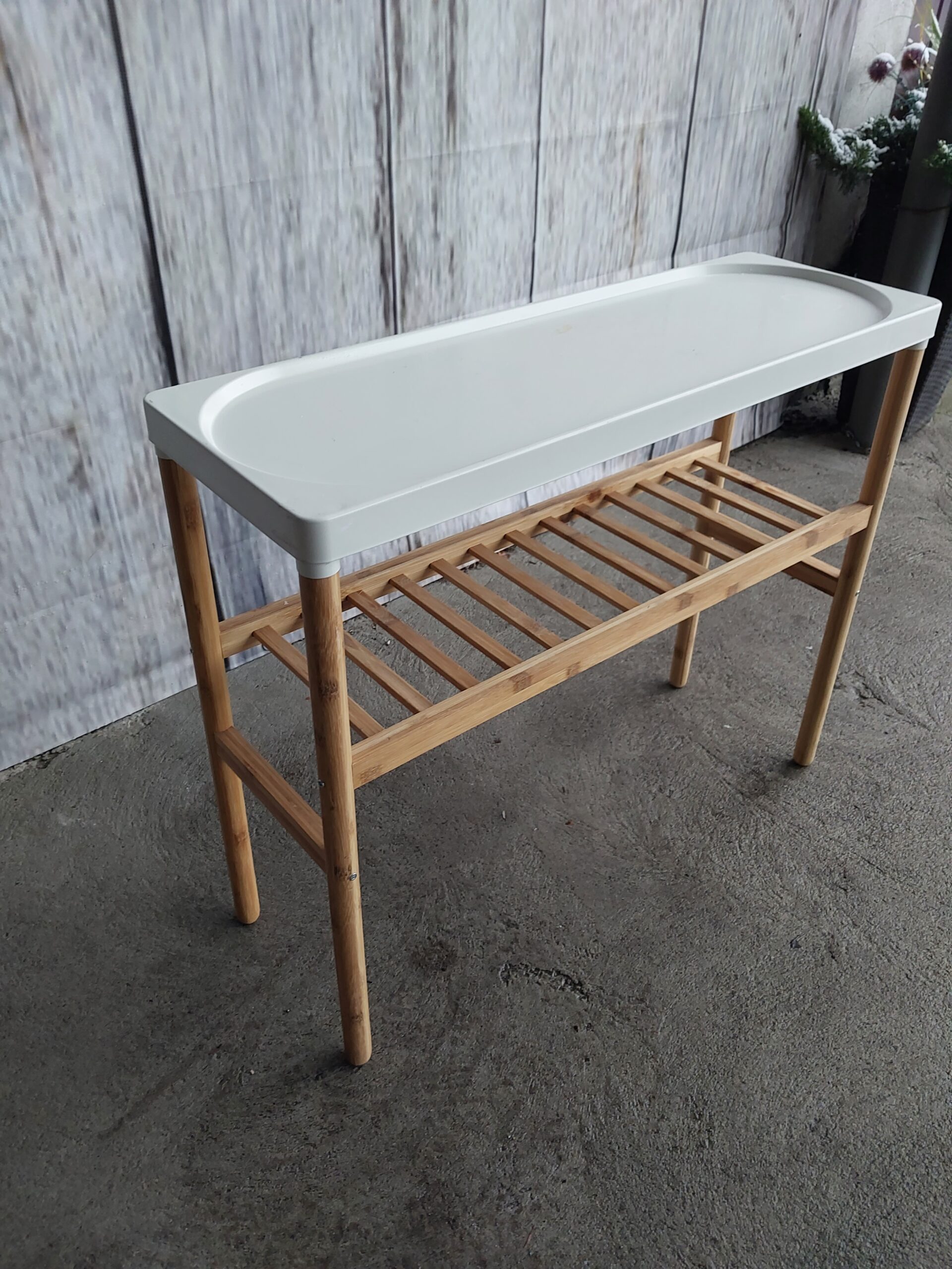 Sprzedam n=bambusowy stojak na kwiaty , doniczki w dobrym stanie , nie zniszczony , stan wizualny zgodny ze zdjęciami , wymiar : wysokość 71 cm , blat 28/84 cm