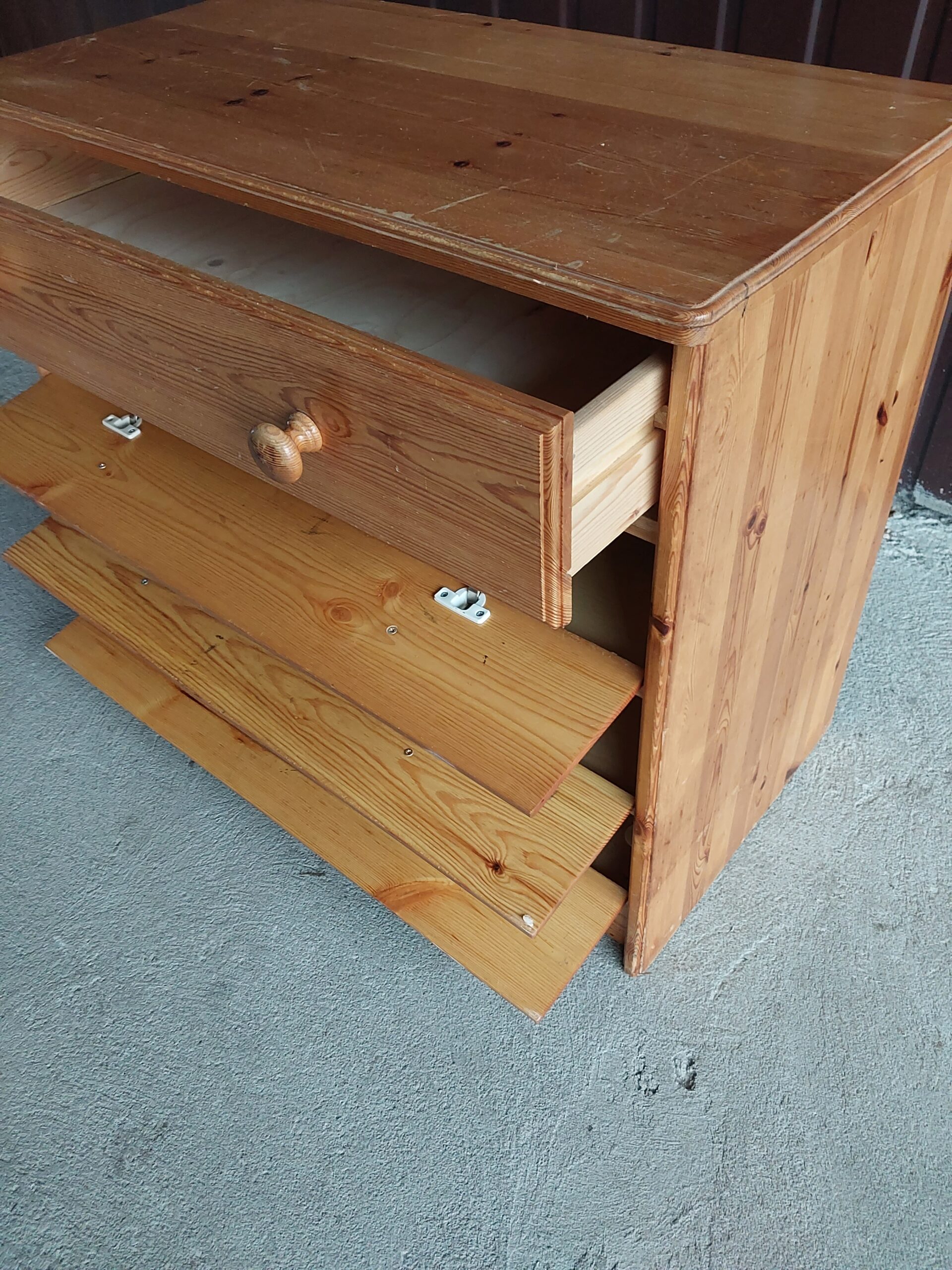 sprzedam sosnową komodę w dobrym stanie , stan wizualny komody zgodny ze zdjęciami , wymiar : wysokość 68 cm , blat 41/81 cm
