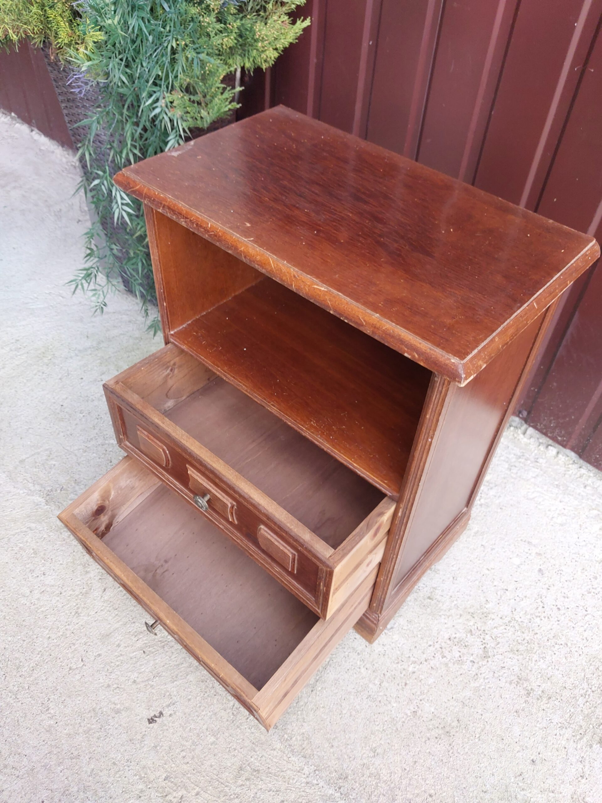 sprzedam małą drewnianą szafkę w dobrym stanie , stan wizualny szafki zgodny ze zdjęciami , wymiar : wysokość 61 cm , blat 28,5/49 cm ,proponuję odbiór osobisty , możliwa wysyłka kurierem , transport