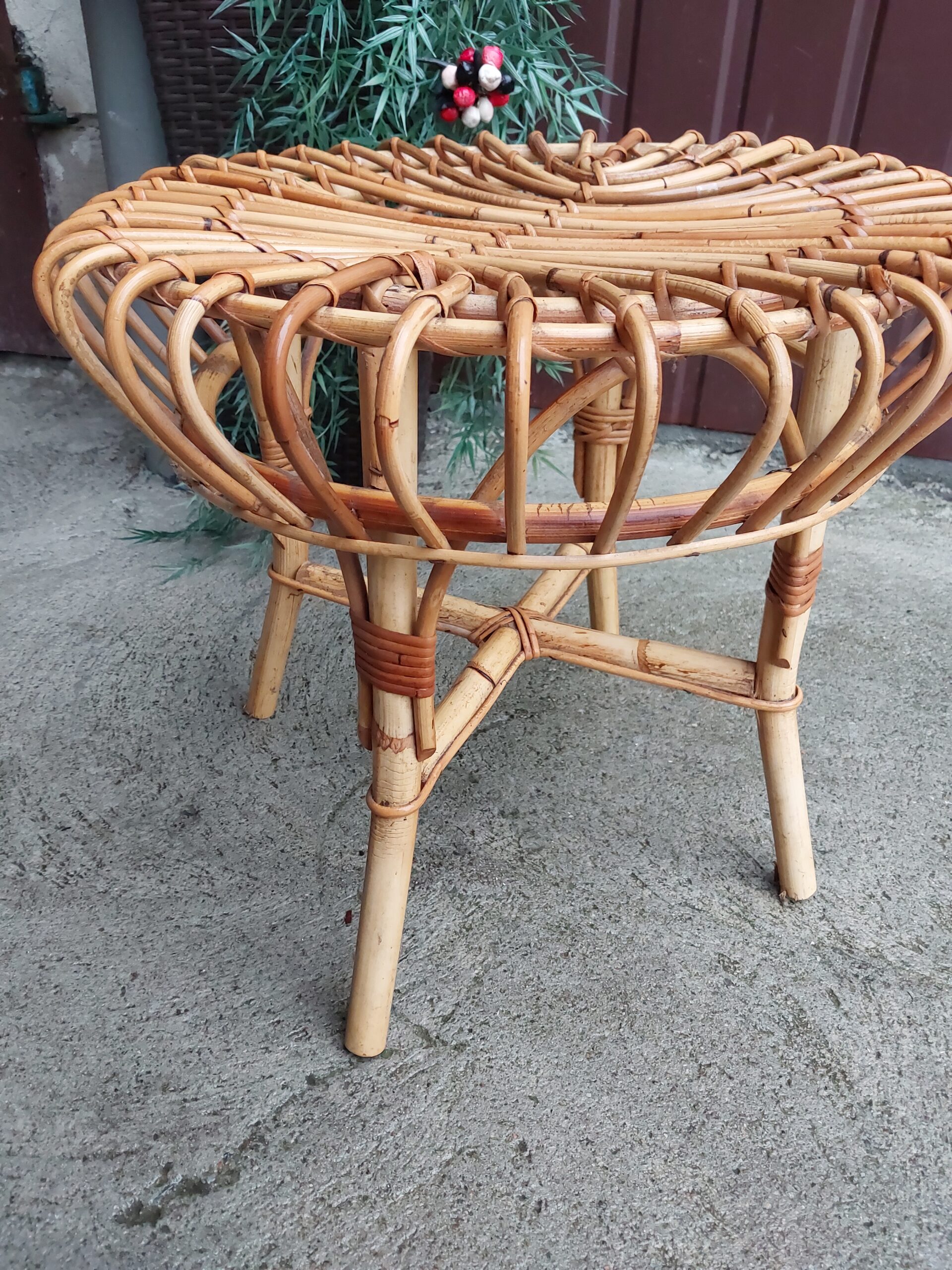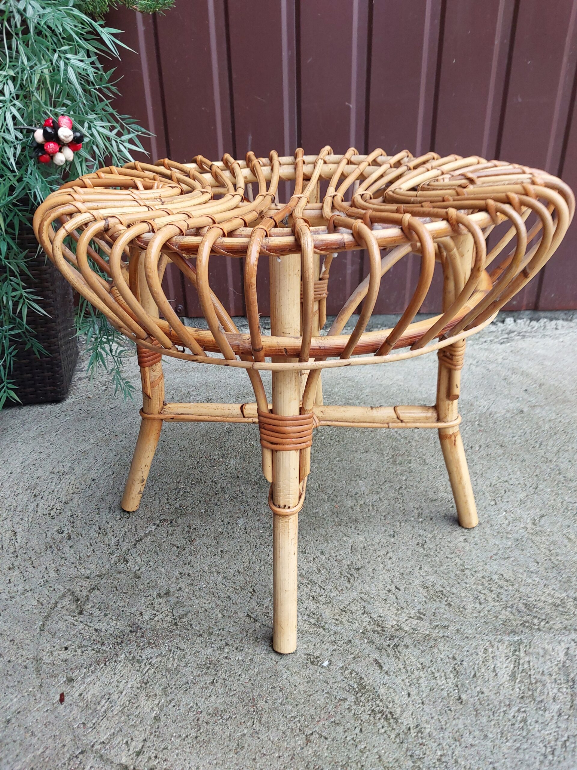 sprzedam taboret bambusowy w dobrym stanie , nie zniszczony , stan wizualny taboretu zgodny ze zdjęciami , wymiar : wysokość 40 cm , średnica 50 cm , możliwa wysyłka kurierem