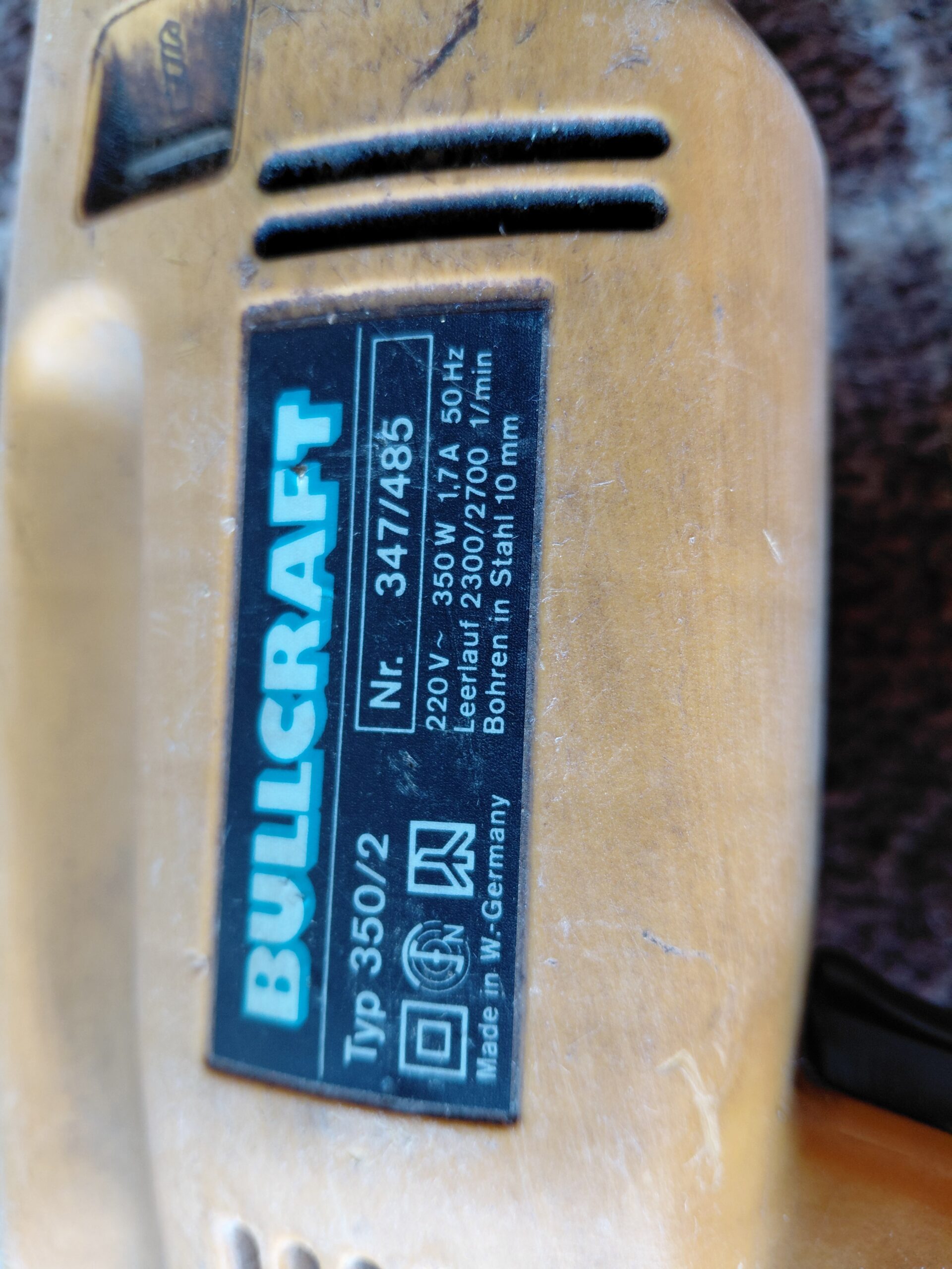 Sprzedam wiertarkę ręczną Bullcraft Typ 350/2, wyprodukowanej w Niemczech Zachodnich.