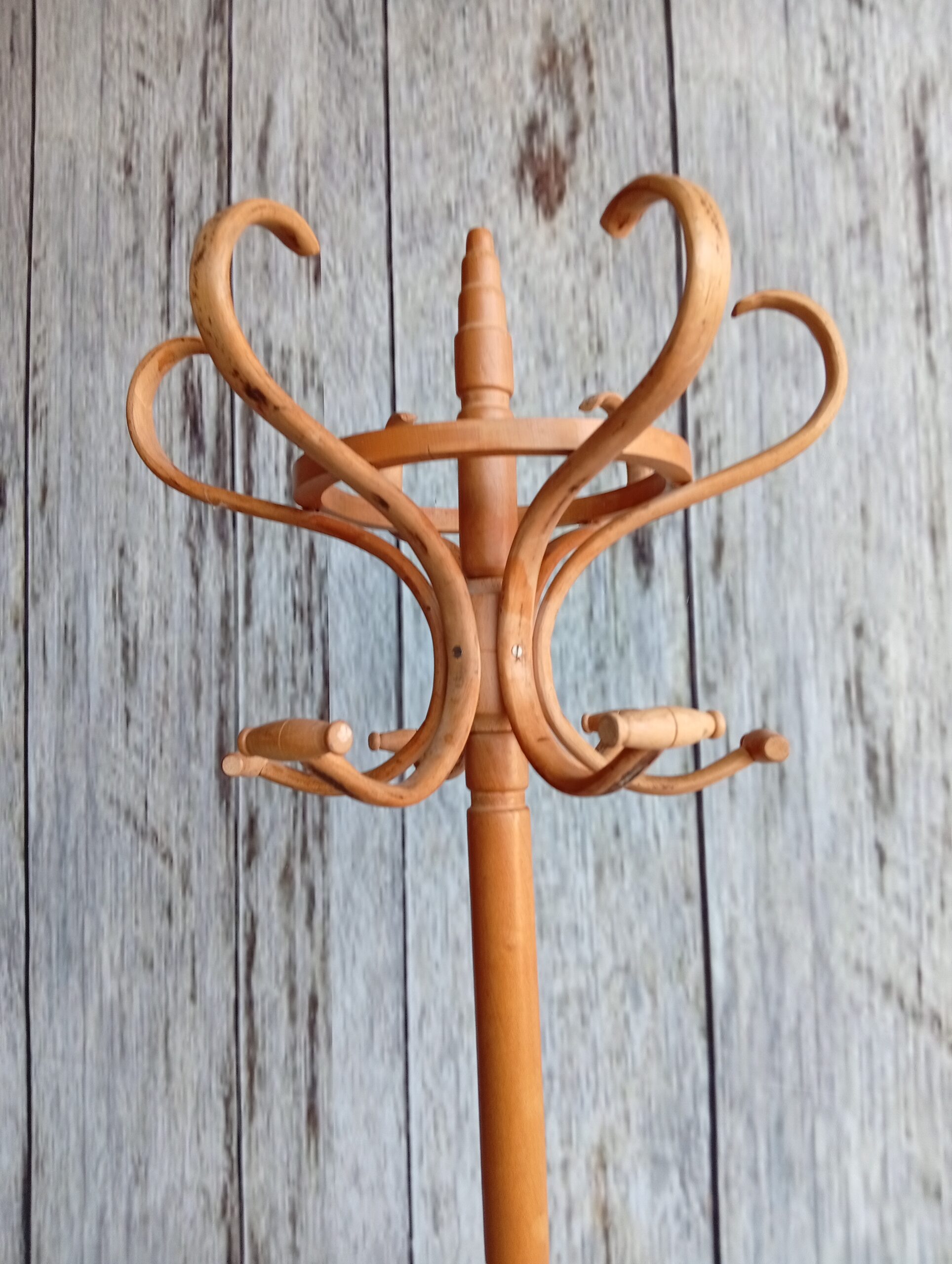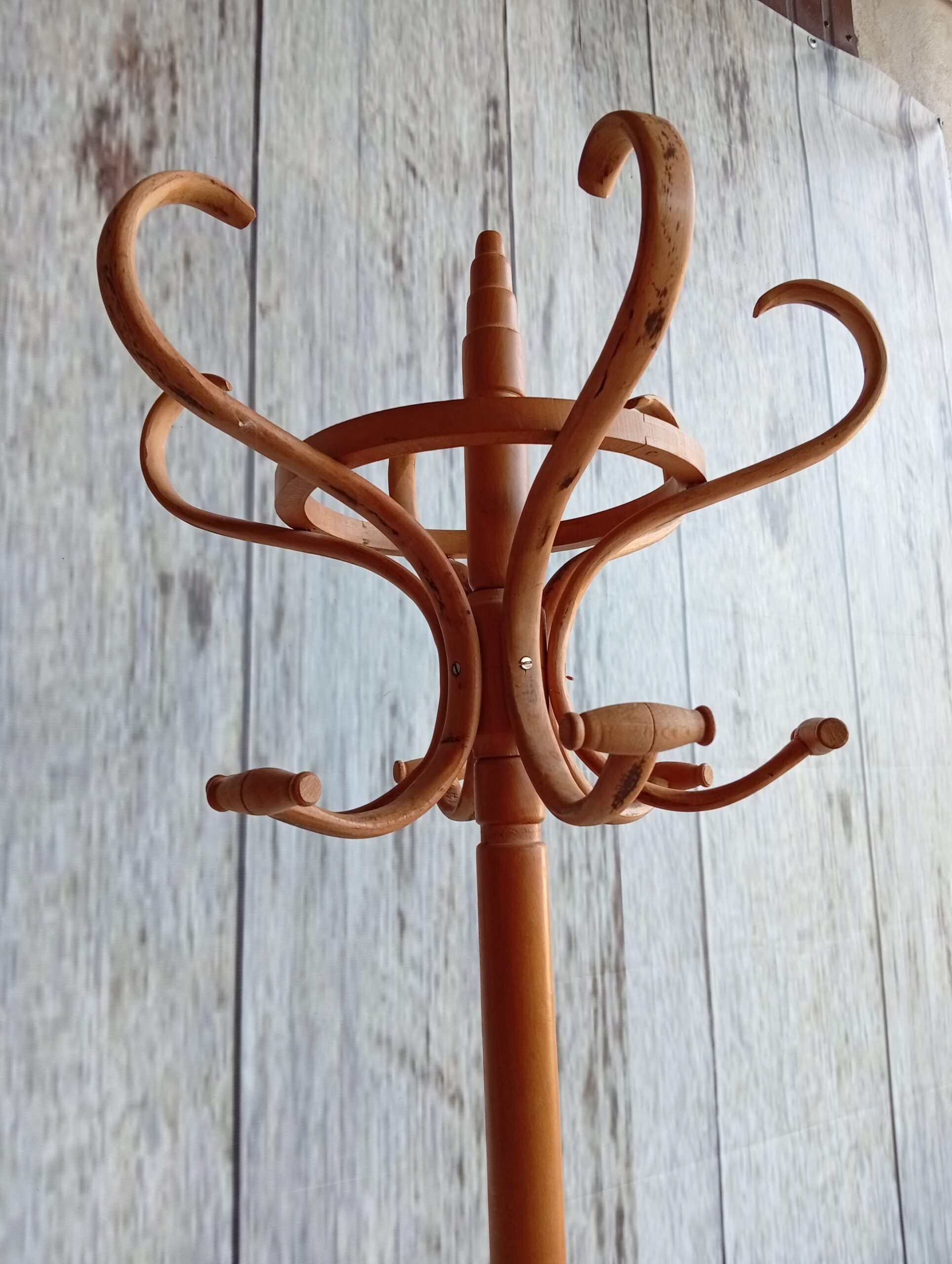 Drewniany, elastyczny, giętki wieszak na ubrania, który pozwala na wygodne przechowywanie i organizację garderoby. Produkt jest używany i gotowy do użycia. Wysokość 187 cm , stan wizualny zgodny ze zdjęciami , proponuję odbiór osobisty , możliwa wysyłka kurierem , transport